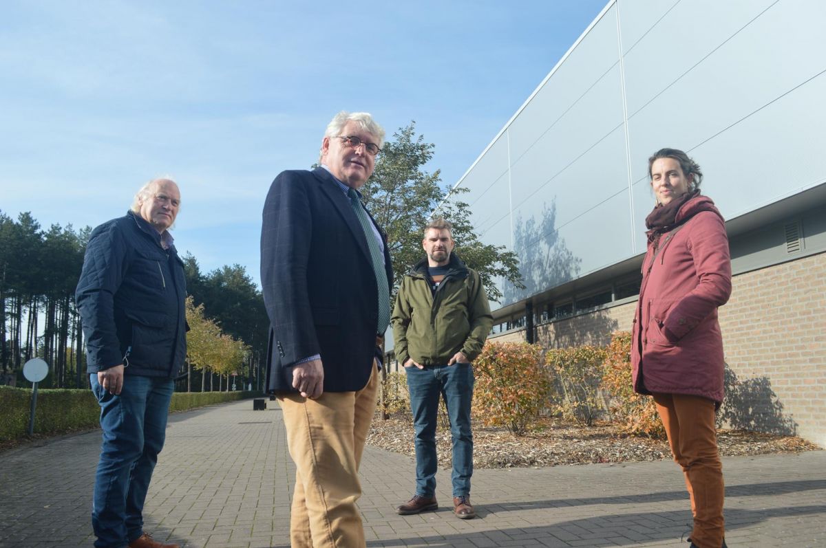 (Foto - vlnr: Theo Martens (Schepen Hechtel-Eksel), Bert Lambrechts (Gedeputeerde van Milieu & Natuur), Gert Broekx (Dubolimburg - RHEDCOOP) en Heleentje Debrauwer (provincie Limburg - SURE2050)